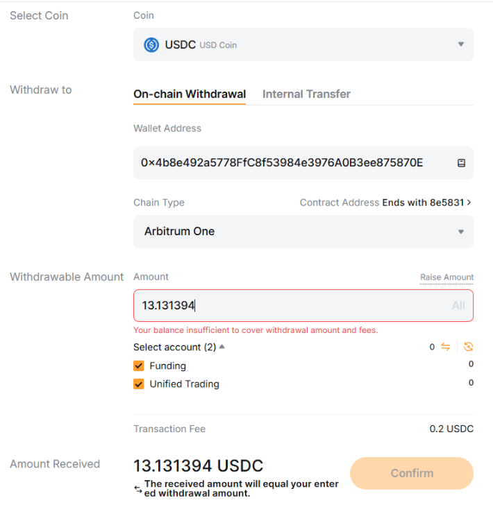 USDCArbitrum OneImportant: keep a little extra balance to cover the withdrawal fee.