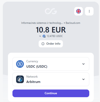 USDCArbitrumFill in the required details and get the wallet address for payment.
