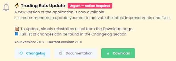 Desktop bot versions (Windows and Linux) are periodically updated with fixes, optimizations, and new features.