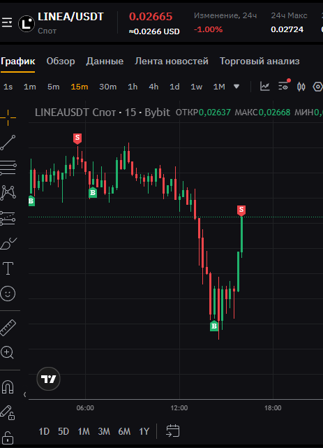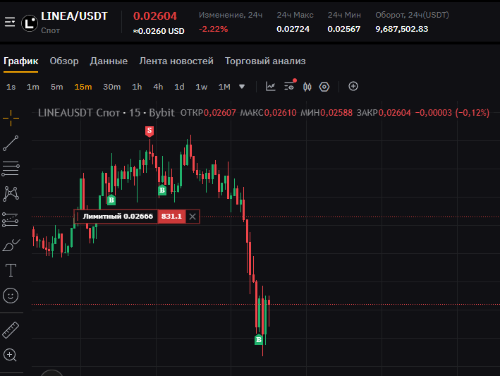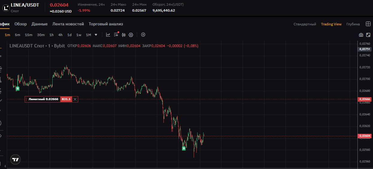 Открыт лонг по LINEA, лимит на тейк не исполнен, цена снижается.