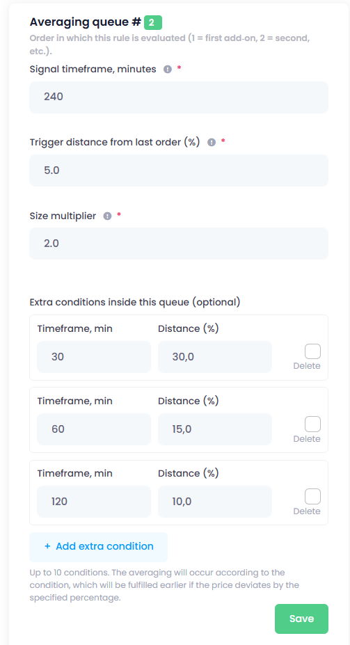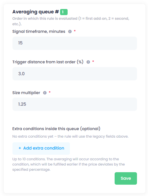 Алгоритм усреднения снижает среднюю цену входа в лонг (или повышает — в шорт), когда рынок идёт против позиции.