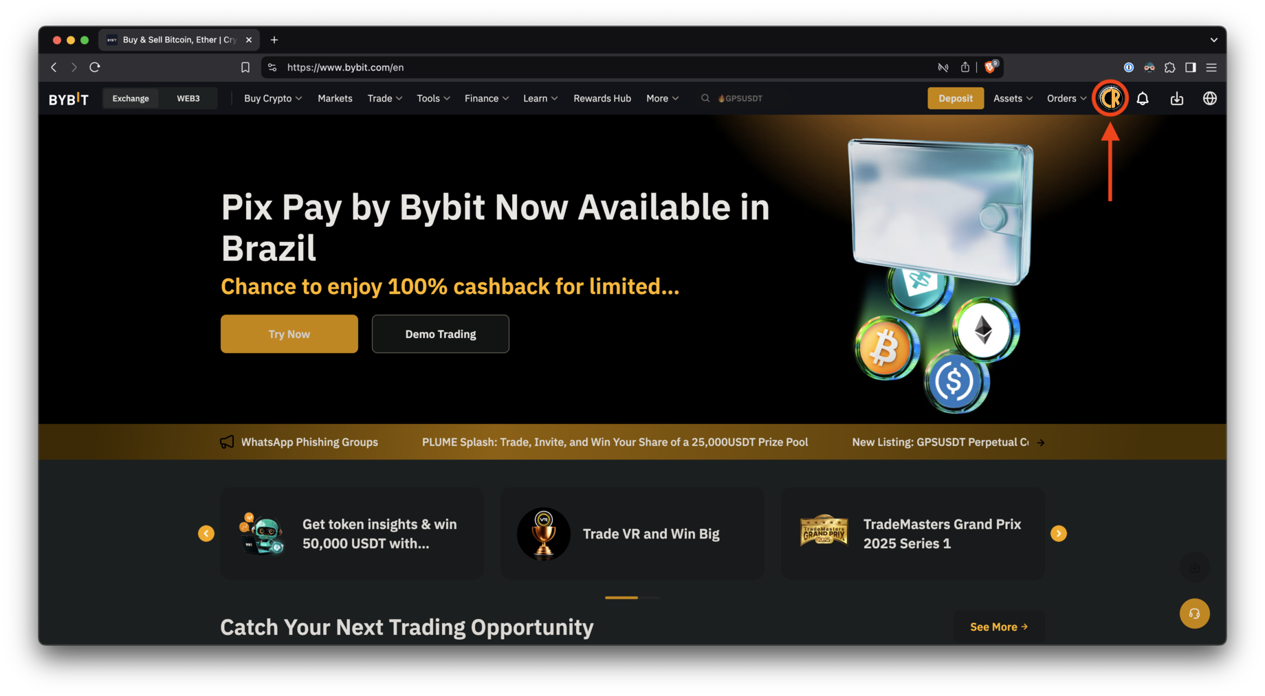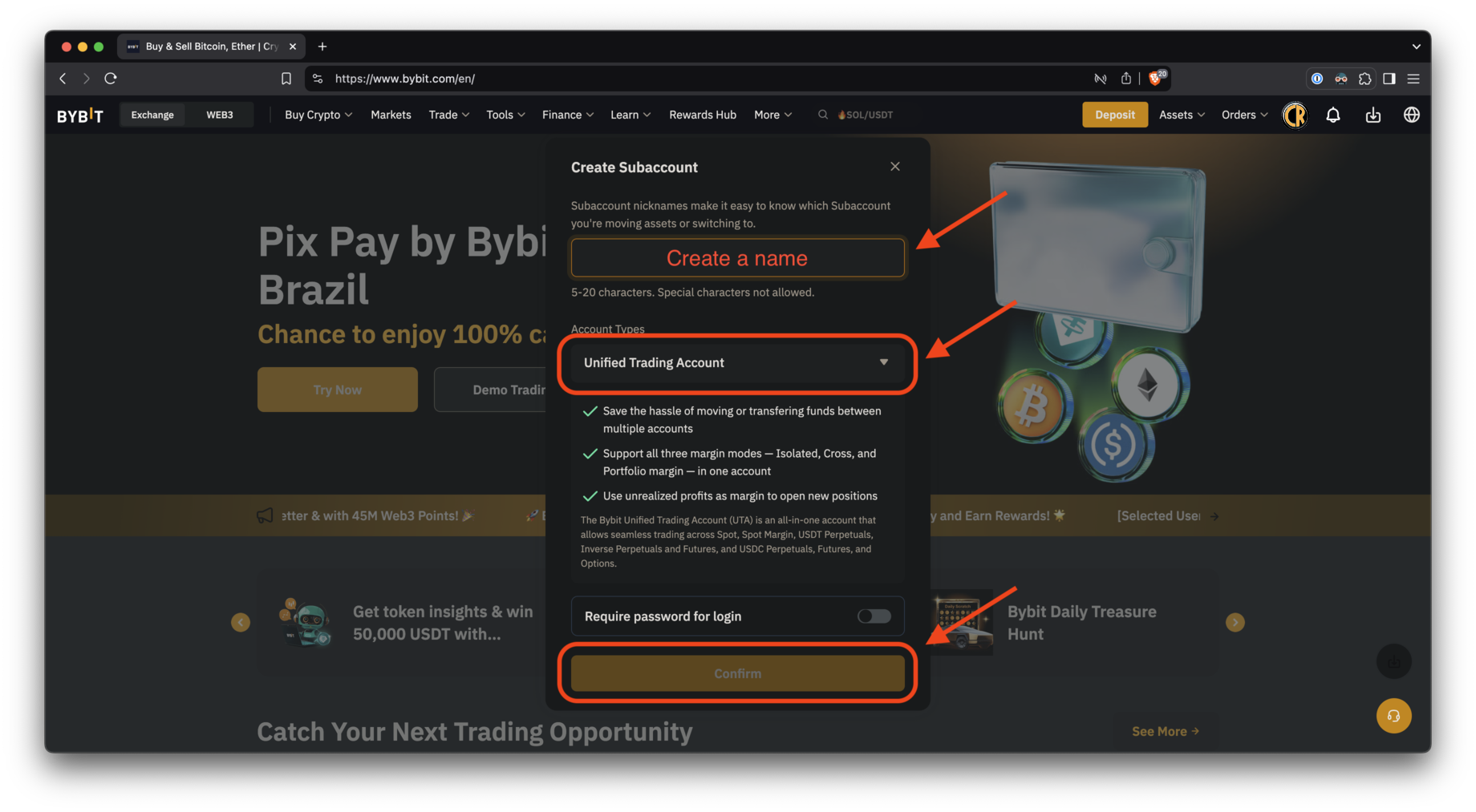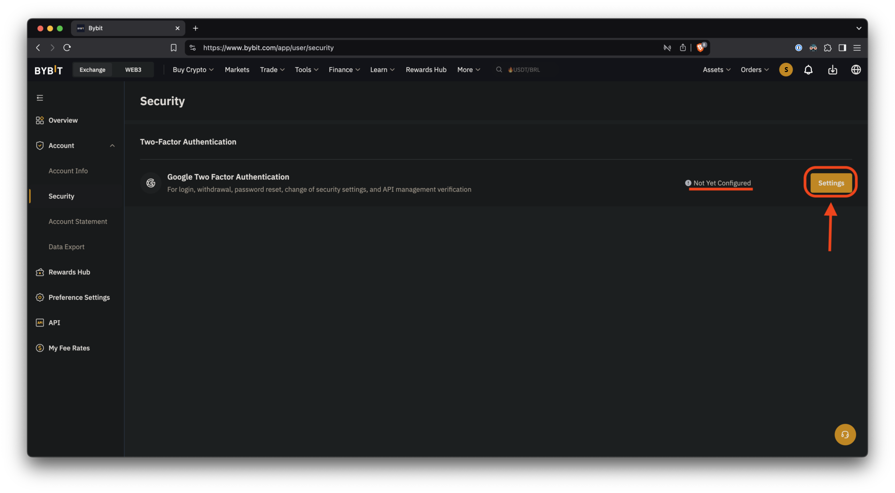 Если вы не настроили 2FA, Bybit попросит вас сделать это, прежде чем продолжить.