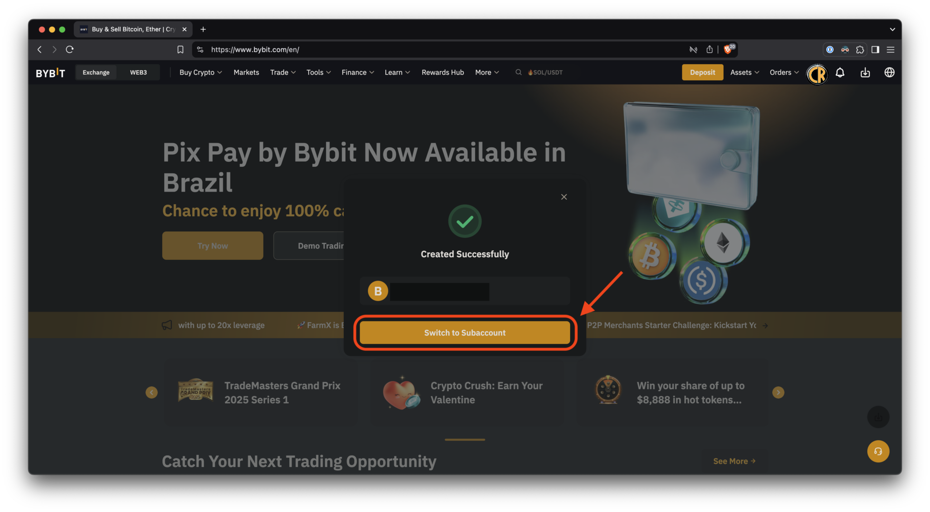 Убедитесь, что вы вошли в только что созданный субаккаунт.