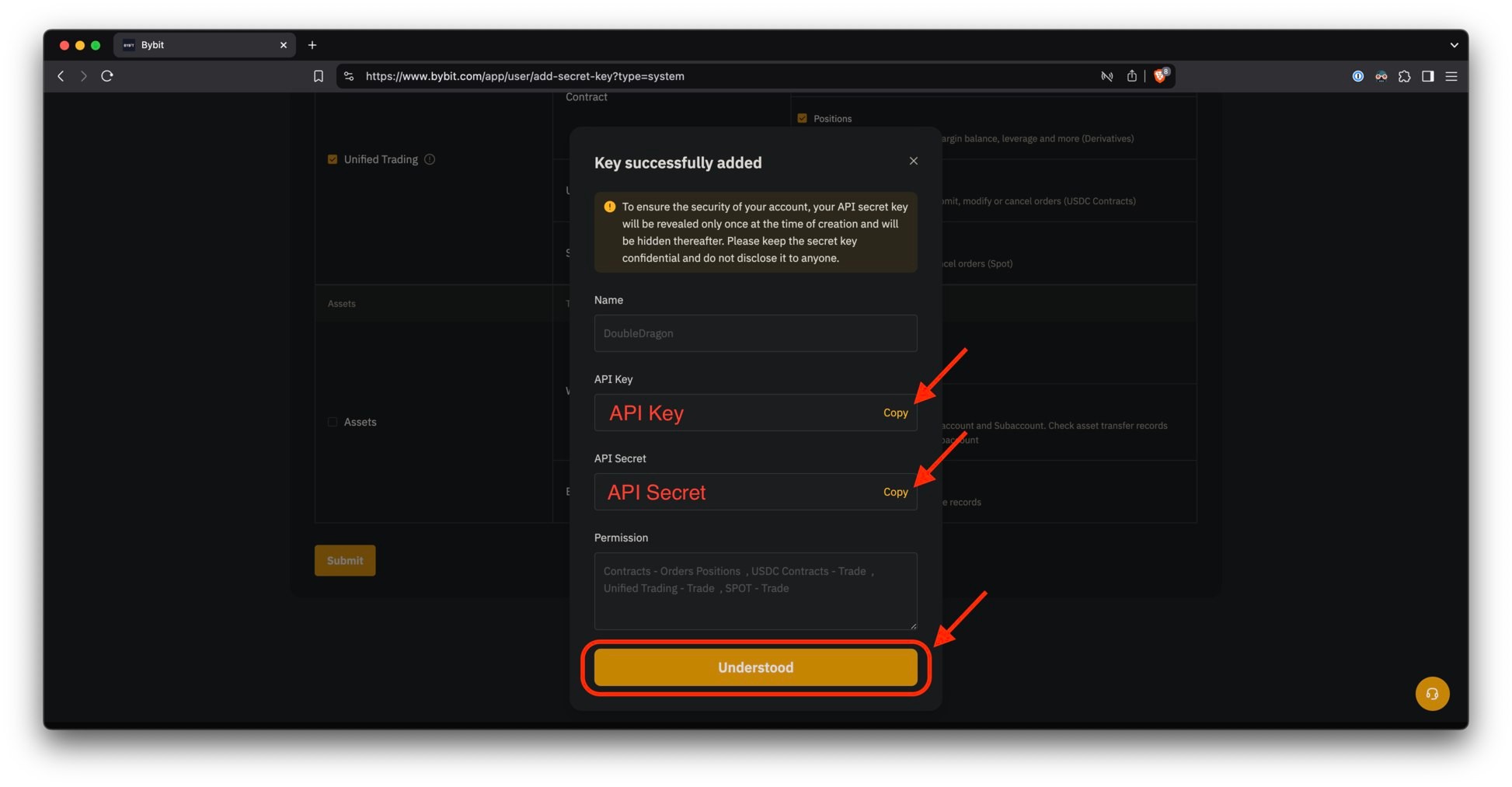 Теперь скопируйте как API Key, так и API Secret и сохраните их в надёжном месте – они скоро понадобятся.