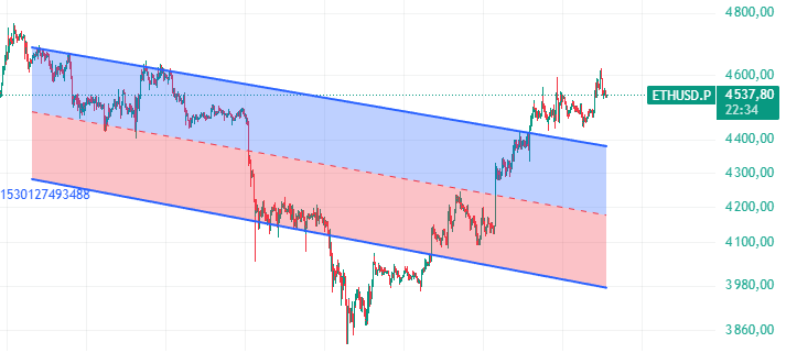 Для каждого актива строится канал регрессии по последним 1000 свечам на 30m. Берётся текущее положение цены относительно середины этого канала и выражается в процентах. Далее считается медиана этих значений по всему списку альтов. Получившееся число — текущее значение индикатора на 30m.