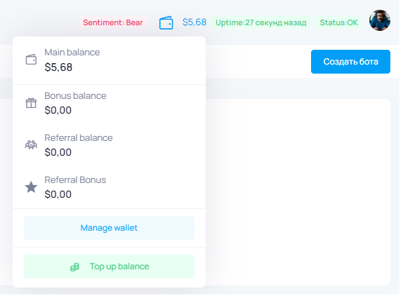Правовой статус и характер услуг. Компания не оказывает брокерские услуги, не является профессиональным участником рынка ценных бумаг и не осуществляет доверительное управление или инвестиционное консультирование. Компания предоставляет программное обеспечение и техническую инфраструктуру для автоматизации торговли по настройкам пользователя. Сервис не принимает и не переводит денежные средства клиентов, не хранит активы и не имеет к ним доступа; интеграция осуществляется через API-ключи без права вывода.