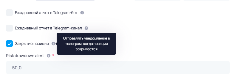 Привязка Telegram позволяет получать уведомления от торговых ботов.