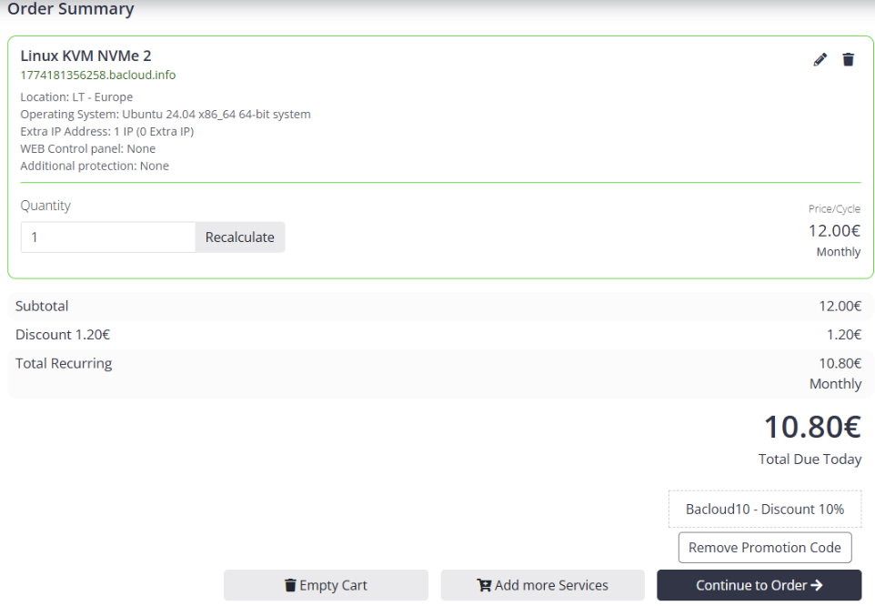 LT - EuropeUbuntu 24.04 x86_64 64-bit systemNoneNoneПосле этого нажимаем Add to Cart.