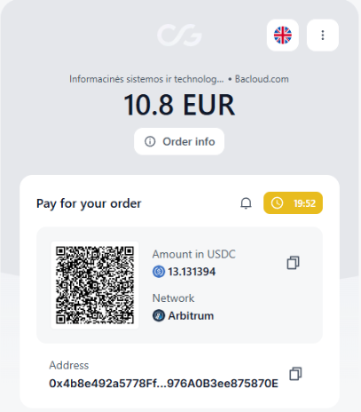 USDCArbitrumЗаполняем обязательные данные и получаем адрес кошелька для оплаты.