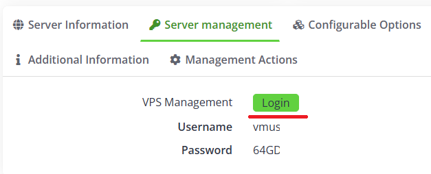 Открываем вкладку Server management и нажимаем Login.