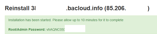 Система выдаст новый Root/Admin Password. Сохраняем его.