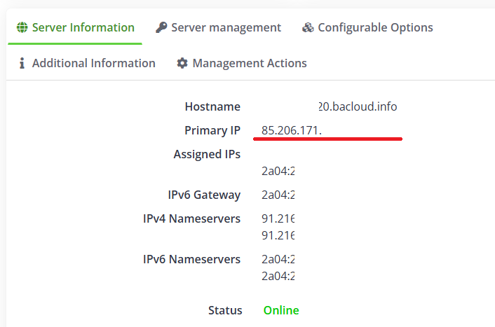 Во вкладке Server Information копируем: