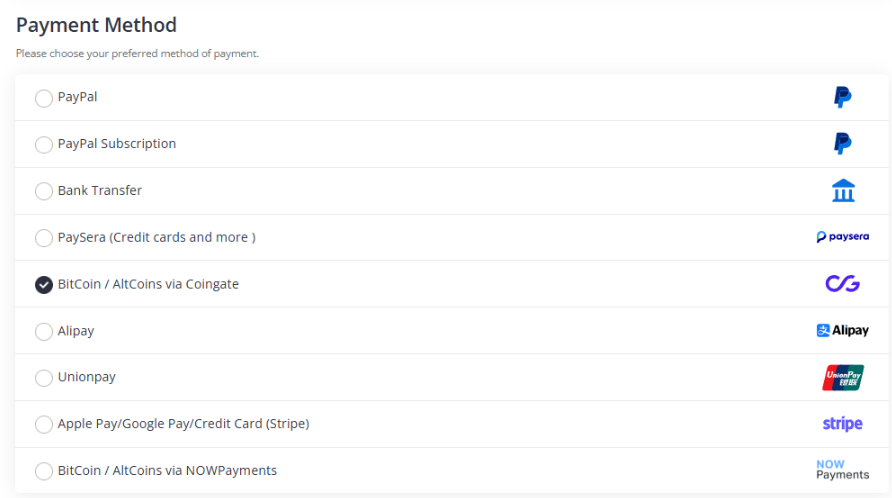 В CoinGate выбираем: