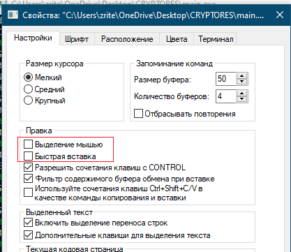 Зачем: на некоторых системах попытка выделения/копирования в консоли "ставит бота на паузу". Снять паузу можно кнопкой ESC или ENTER, но чтобы не рисковать торговлей — лучше сразу отключить эти опции.
